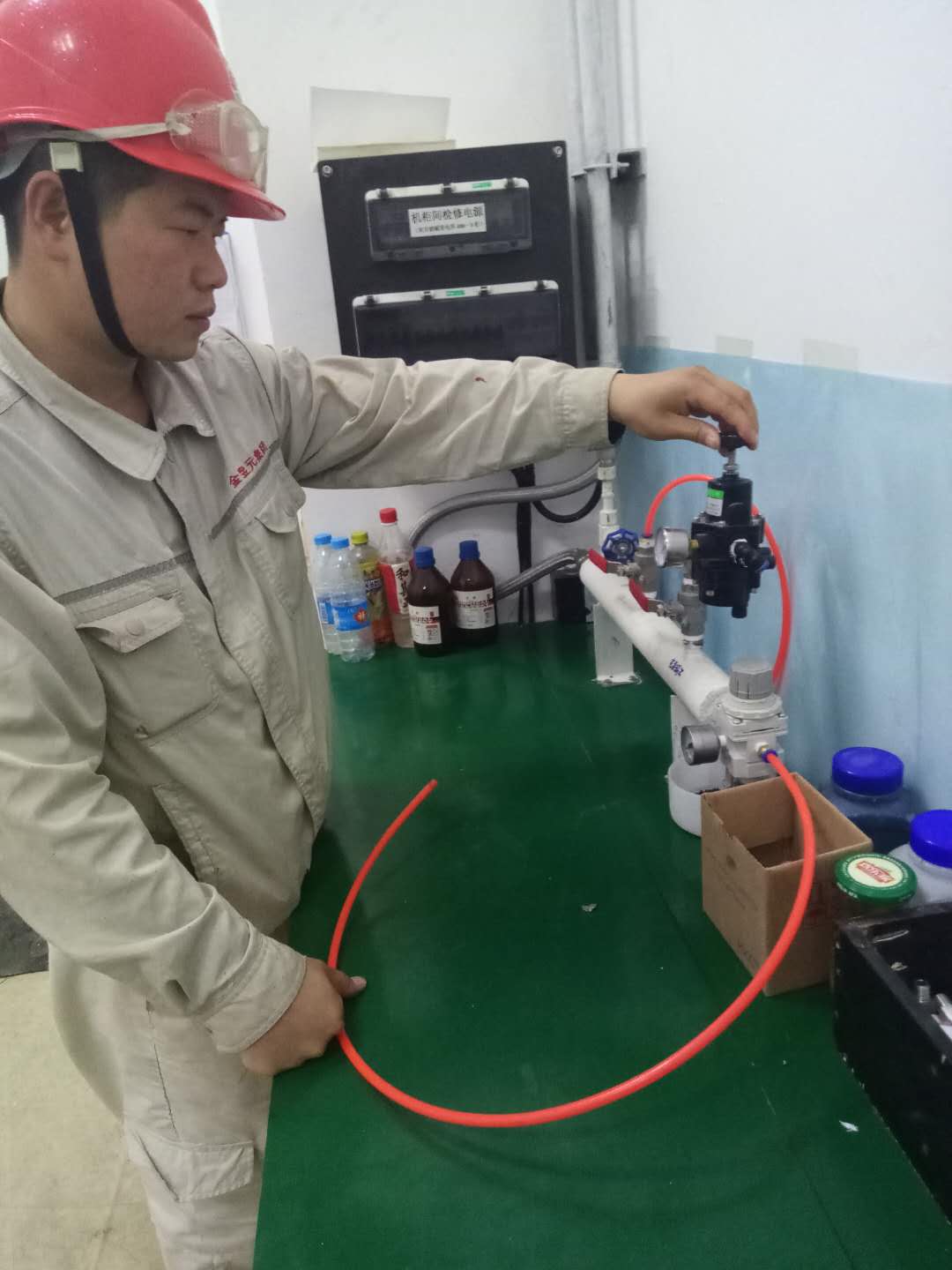 聚合釜出料閥因閥體內(nèi)漏,影響生產(chǎn)效率,我們積極調(diào)動(dòng)裝置力量對(duì)新到閥門進(jìn)行安裝,由于安裝位置較高,閥門重量大,現(xiàn)場(chǎng)又沒有可用的吊裝點(diǎn),面對(duì)困難,我們沒有逃避,大家共同討論,硬是利用纜繩吊裝完成了安裝更換工作,提高了聚合出入料效率。