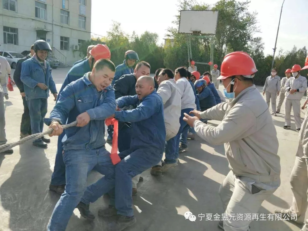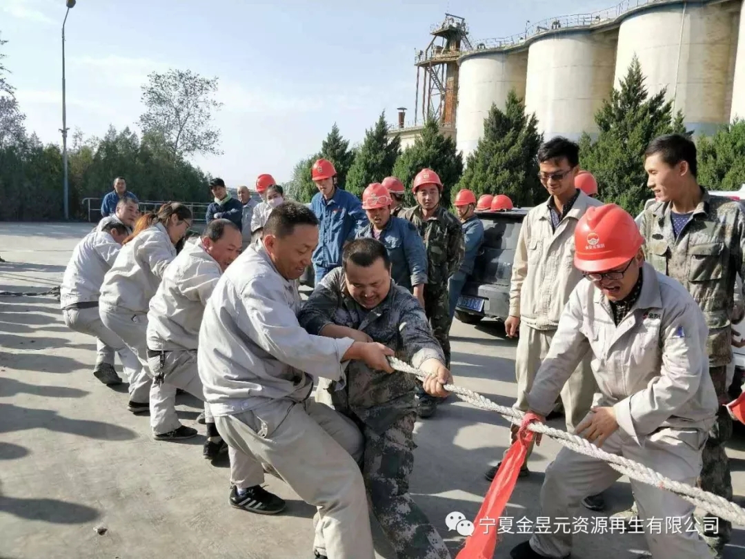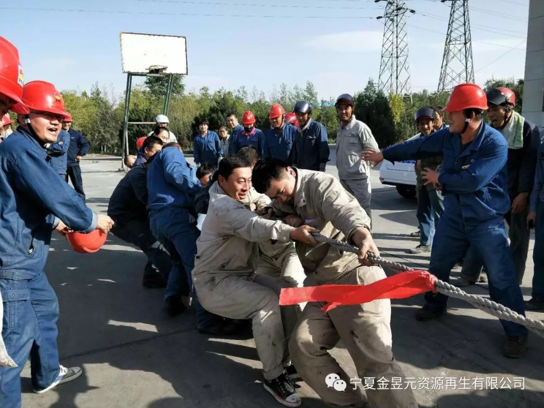 當比賽的哨聲響起,參賽隊員們口中一起高呼著“一二,一二”, 雙手緊握長繩,憋足了勁拼命往后拉,各裝置管理人員也在隊伍旁邊助陣加油,未參賽的員工自發(fā)組成啦啦隊為比賽隊員吶喊加油,號子聲、吶喊聲,此起彼伏的飄蕩在籃球場上空。經(jīng)過緊張激烈的對抗,電石二裝置代表隊以全勝的戰(zhàn)績奪得慶“十一”拔河比賽第一名的成績,動力裝置代表隊緊隨其后,獲得第二名的好成績,生料裝置代表隊獲得第三名。