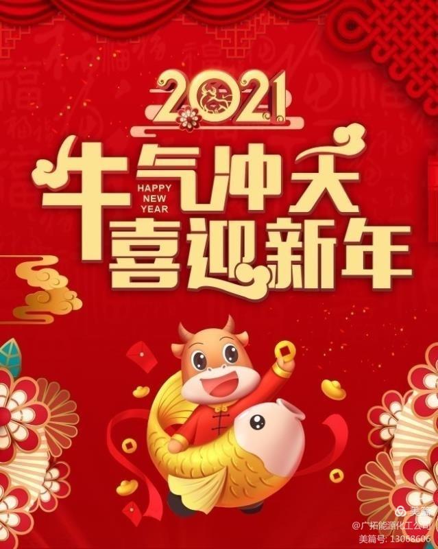 金牛奮蹄開錦繡,牛耕年豐又一春。值此農(nóng)歷辛丑牛年到來之際,廣拓化工公司總經(jīng)理賈存富攜公司領(lǐng)導班子向全體員工和給予化工公司鼎力支持的各級領(lǐng)導、朋友致以衷心的感謝和良好祝愿,祝大家在新的一年里牛氣沖天,身心健康,萬事如意!