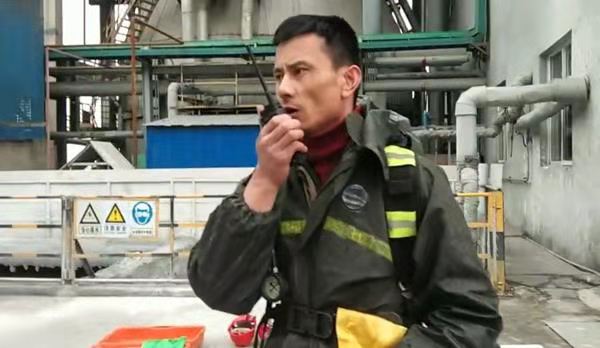 隨著現(xiàn)場(chǎng)總指一聲令下,應(yīng)急救援演練正式開(kāi)始。巡檢人員徐強(qiáng)在巡檢時(shí)發(fā)現(xiàn)脫硫氨水罐區(qū)發(fā)生氨水泄露,現(xiàn)場(chǎng)氨味較大,申請(qǐng)啟動(dòng)氨水泄露事故“應(yīng)急預(yù)案”。情況被迅速層層上報(bào);副經(jīng)理莊濤指示啟動(dòng)應(yīng)急處理預(yù)案:“確認(rèn)現(xiàn)場(chǎng)有無(wú)人員受傷,落實(shí)漏點(diǎn)具體位置,組織消漏”。