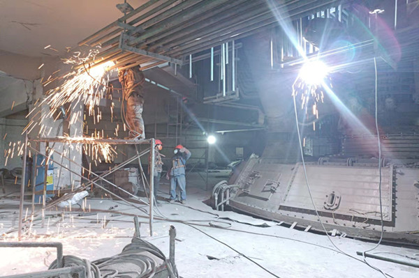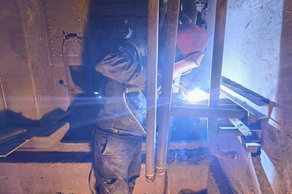 在檢修現(xiàn)場,我們的檢修工人身系安全帶,手拿焊鉗,蹲在狹小的空間,焊接水管,耗時(shí)耗力,唯有飛濺如麥穗的焊花展現(xiàn)著他們的顏色,魚骨似的焊縫是他們驕傲的成果。同時(shí)在檢修過程中也伴隨著灰塵飛揚(yáng)和各種安全隱患,但在我們檢修工人的臉上沒有看見沮喪的表情,看到的是檢修工人汗水浸透的后背,沒有休憩,只有投入;看到的是檢修工人一張張布滿灰塵的臉頰,沒有怨言,只有投入。在這里你可以看到那一個(gè)個(gè)無比堅(jiān)毅的目光,感受到他們內(nèi)心滿滿的自信和他們愛崗敬業(yè)、無私奉獻(xiàn)、不畏艱辛的精神;他們攜手共進(jìn)、分工合理、工作有序,只為創(chuàng)造安全的檢修環(huán)境;他們?yōu)樘崆巴瓿蓹z修任務(wù)加班到深夜,工作時(shí)間長、工作量大,不辭辛勞,沒有任何怨言,充分展現(xiàn)了“團(tuán)結(jié)、拼搏”的企業(yè)精神。