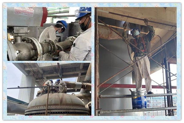 夏日炎炎,維修人員在高溫下對設備進行檢修,不怕苦不怕累,裝置及時提供飲用水,防止人員在檢修的過程中發(fā)生中暑,同時及時的完成工作任務,保障生產(chǎn)運行正常。在檢修中,堅持安全第一,揮灑汗水,關鍵時刻義無反顧,挺身而出,困難面前,毫無退卻,只為檢修工作安全。