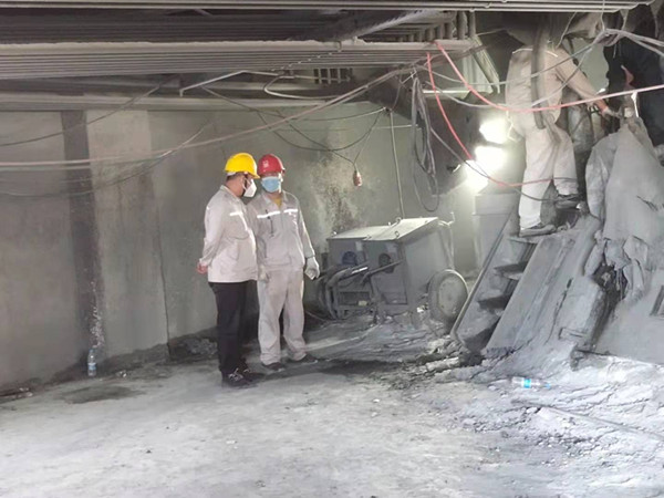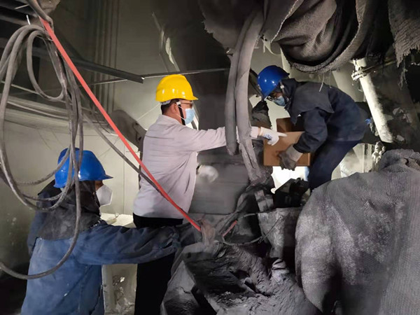 檢修開始時對現(xiàn)場可能存在的危險有害因素進(jìn)行分析評估,制定檢修方案,落實安全應(yīng)急救援措施,壓實各級管理人員責(zé)任,要求相關(guān)單位人員深入檢修現(xiàn)場,積極參與檢修中,檢修現(xiàn)場到處都是忙碌的身影,都記錄著一個動人的故事,也是一幅描繪生動的人物素描,總經(jīng)理王鐵鎖不辭勞累奔波在凈化系統(tǒng)與爐面更換設(shè)備現(xiàn)場,落實安全措施同時對安裝下料柱人員,底部環(huán)的規(guī)范性做出指導(dǎo)。