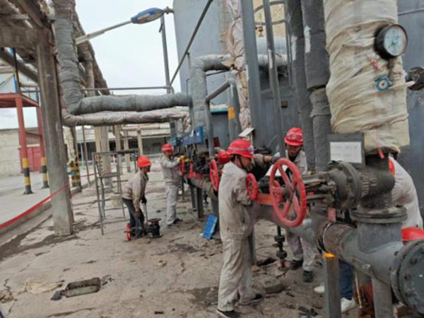 各裝置克服檢修點(diǎn)多面廣、檢修環(huán)境差、人員少等困難,精心組織、合理安排,使檢修工作有序推進(jìn),裝置各級(jí)管理人員以身作則與現(xiàn)場檢修人員共同奮戰(zhàn)在現(xiàn)場,無論是烈日的暴曬,還是黃沙的肆虐,都不能阻擋他們與維修工共檢修的決心。他們與現(xiàn)場檢修工奮戰(zhàn)在檢修現(xiàn)場的每一個(gè)角落,清油污、開人孔、拆法蘭、換閥門, 他們的身影無處不在,這種身先士卒的精神,輻射帶動(dòng)起全體檢修人員的干勁。在每個(gè)檢修現(xiàn)場,職工們都精神抖擻,全心全力投入檢修工作,為了趕進(jìn)度,他們自覺放棄午休時(shí)間,在檢修現(xiàn)場簡單吃點(diǎn)飯后,又繼續(xù)投入檢修中。夜幕降臨,廠區(qū)內(nèi)燈火輝煌,參與檢修的人員發(fā)揚(yáng)不怕苦、不怕累,連續(xù)作戰(zhàn)的精神戰(zhàn)斗在檢修現(xiàn)場。