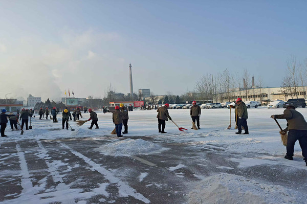 在除雪過程中,領(lǐng)導(dǎo)們始終與員工們并肩作戰(zhàn),他們不僅是指揮者,更是參與者。當(dāng)遇到積雪結(jié)冰難以清理時(shí),領(lǐng)導(dǎo)們與員工們共同商議對(duì)策,現(xiàn)場調(diào)配資源。他們親自上陣,與員工們一起喊著口號(hào),齊心協(xié)力將積雪堆攻克。