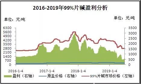 圖4 2016-2019年國(guó)內(nèi)99%片堿盈利分析