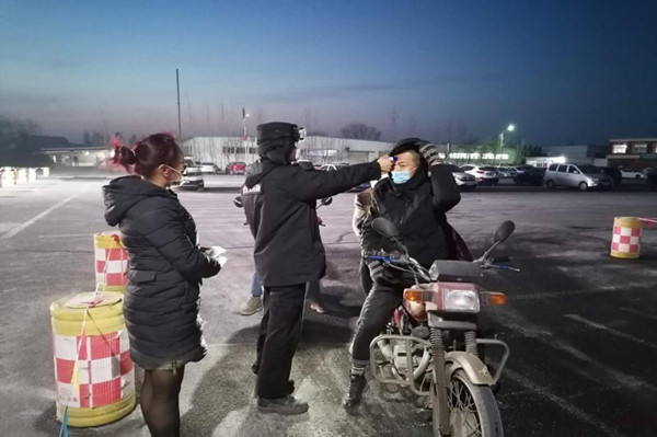 2月13日,氣溫驟降,在片區(qū)北大門新增檢測點(diǎn),由于值班室是移動房,沒有暖氣,劉聰俊和侯進(jìn)在晚上頂著寒冷值班。盡管天氣嚴(yán)寒,但他們依然堅(jiān)守崗位,一絲不茍地對通行人員進(jìn)行體溫測量和信息登記,嚴(yán)把疫情防控關(guān)。和他們一樣,所有檢測點(diǎn)的保衛(wèi)科人員都默默無聞地與疫情防控和嚴(yán)寒做著斗爭。