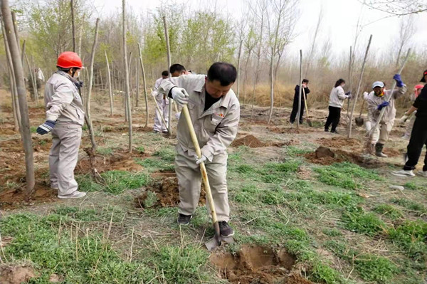 各片區(qū)、部室特別加強了樹苗澆水的及時性,盡最大能力提高樹苗栽植成活率。各單位強調(diào)科學管護,確保種植一片、成活一片、綠化一片。今年全集團共種植楊樹、柳樹近7000棵,榆樹近10000棵。