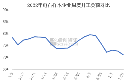 本周電石平均開工負荷繼續(xù)下降,截至本周四,電石行業(yè)周度平均開工負荷率在71.03%,環(huán)比上周下跌1.61個百分點。