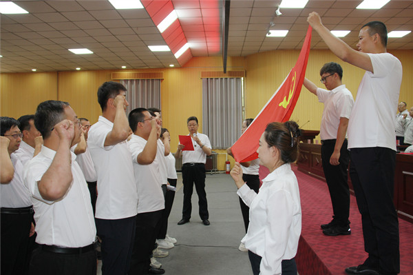 大會(huì)舉行新黨員入黨宣誓儀式,全體黨員共同重溫入黨誓詞。